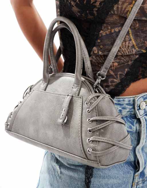 Bershka fringe detail handbag in washed grey
