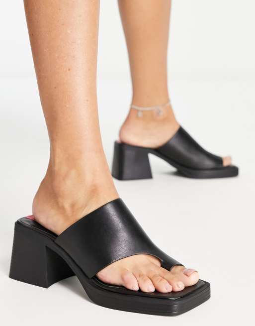 Bershka heeled platform sandal in black