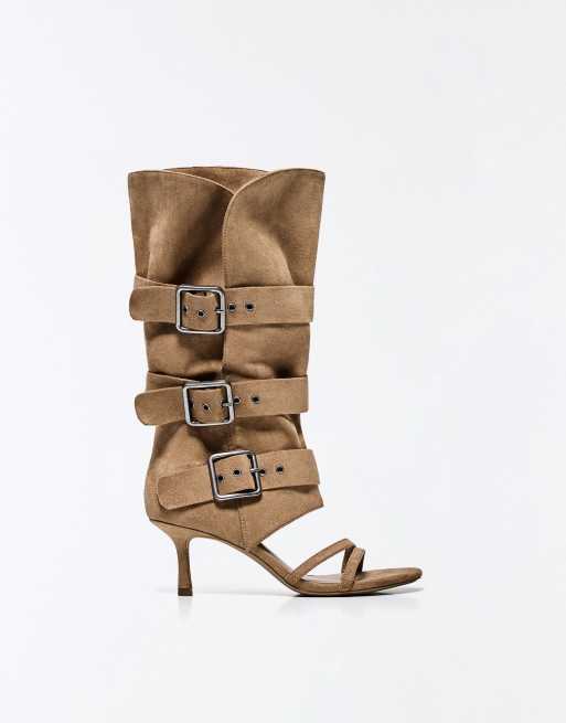 Bershka Heeled trousers sandals with buckles in beige