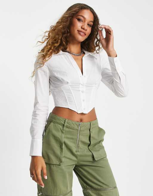 Bershka hook up corset detail shirt in white