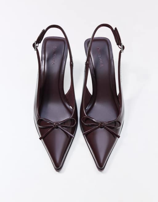 Bershka Kitten heel slingback shoes in burgundy