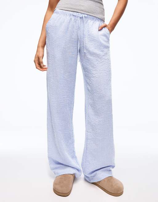 Bershka linen rich trousers with an elasticated waistband in blue - NAVY
