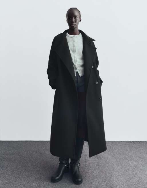 Bershka Long high neck coat in black