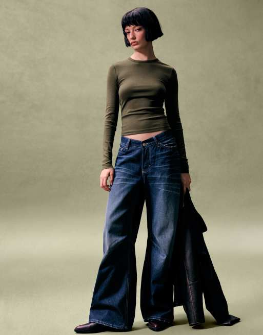 Bershka Long sleeve top in khaki