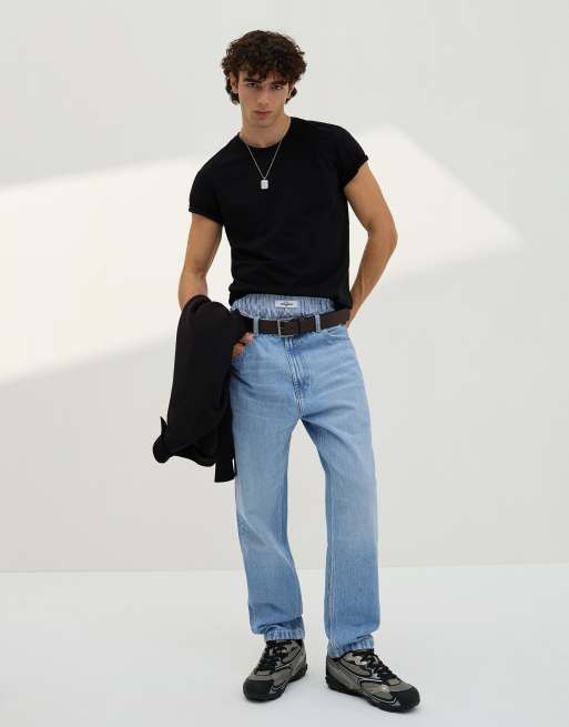 Bershka Loose jeans in mid blue
