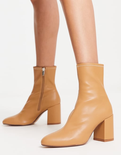 Bershka low heel sock boot in beige