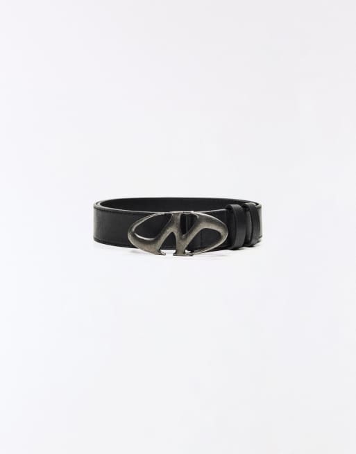 Bershka Metal buckle belt in black