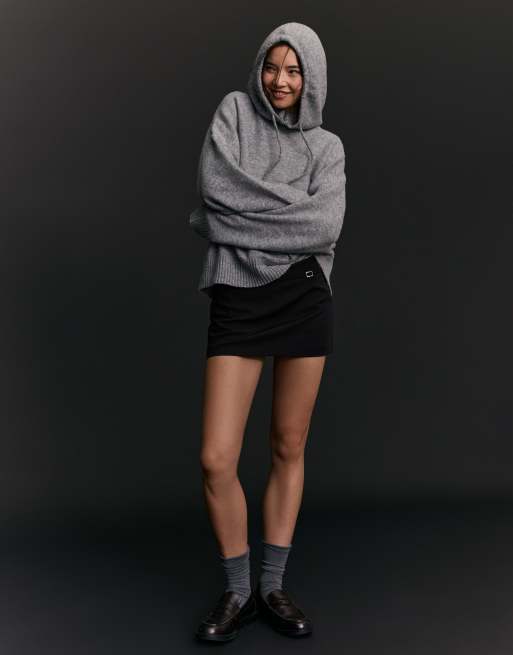 Bershka Mini buckle skort in black