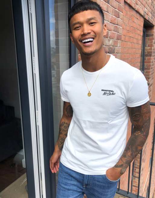 Bershka muscle fit t-shirt with chest print in white