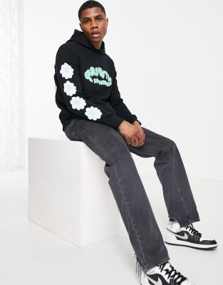 Bershka oversized flower back print hoodie in black