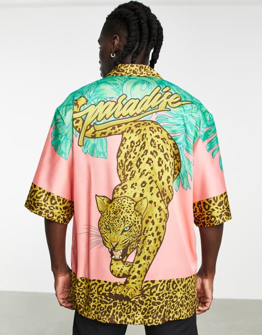 Bershka oversized printed shirt with paradise back print in pink