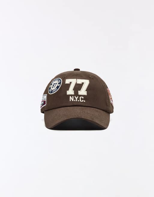 Bershka Patch cap in brown