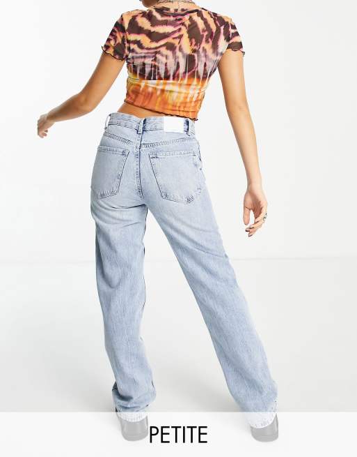 Bershka Petite high waisted dad jean in bleached wash