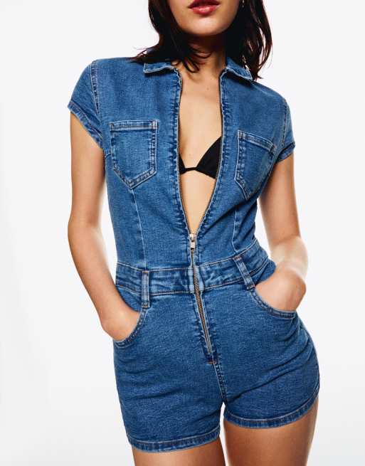 Bershka playsuit in mid blue