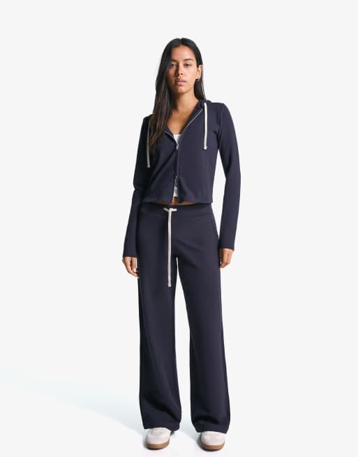 Bershka Plush jersey trousers in navy