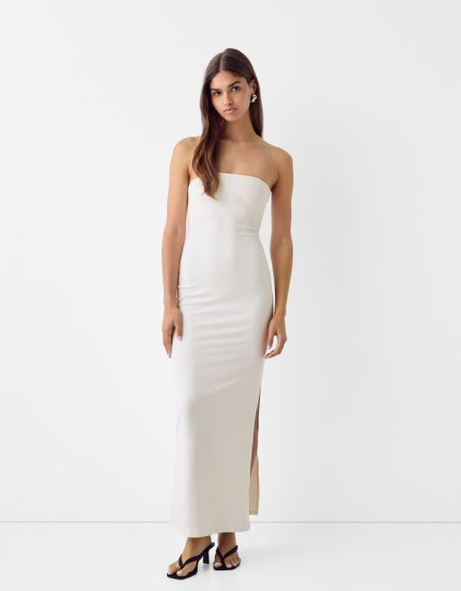 Bershka polyamide bandeau maxi dress in cream