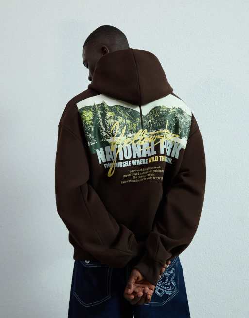 Bershka Printed hoodie in brown