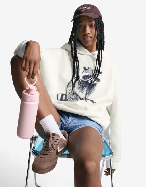Bershka Printed hoodie in white