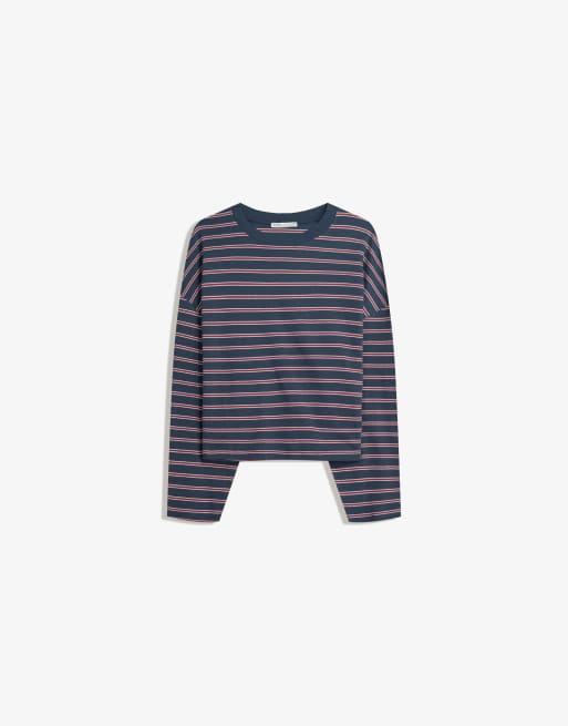 Bershka Printed long sleeve t-shirt in navy