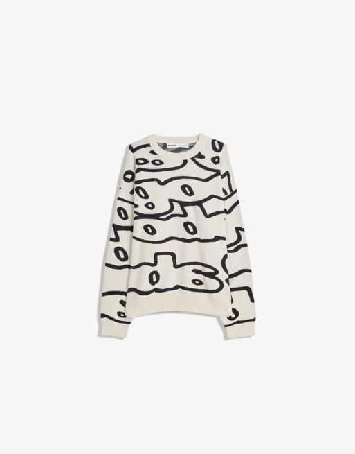 Bershka Printed sweater in white