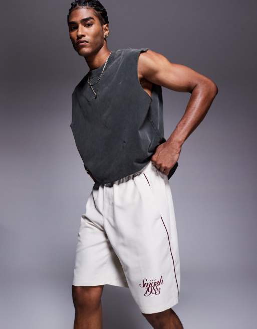 Bershka retro sports short in stone