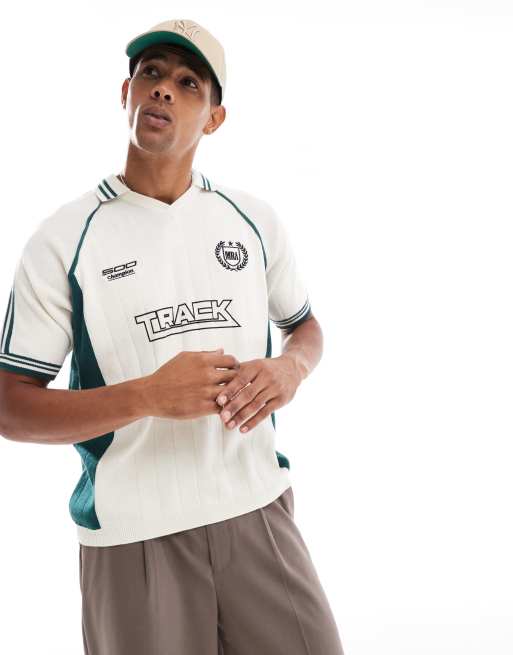 Bershka retro sports t-shirt in ecru