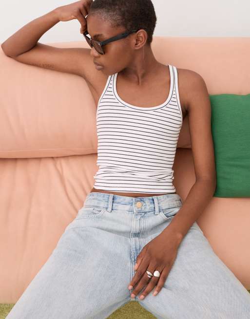 Bershka ribbed tank top in white