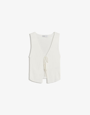 Bershka Ribbed vest with tie detail in white
