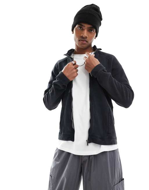Bershka ribbed zip through funnel sweatshirt in charcoal