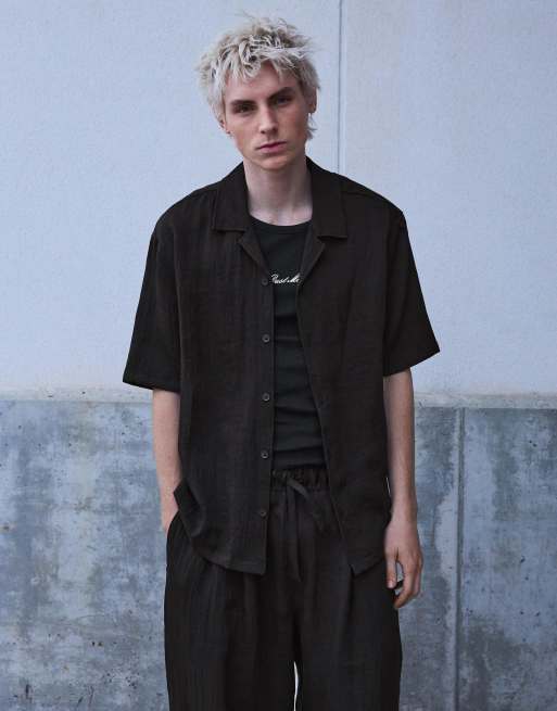 Bershka Rustic short sleeve shirt in black