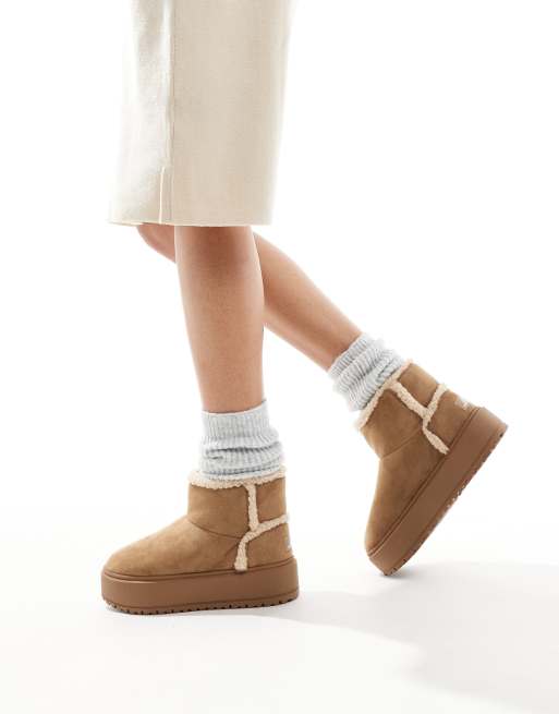 Bershka shearling trim cosy boots in beige