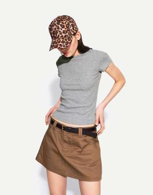Bershka short sleeve crew neck t-shirt in grey