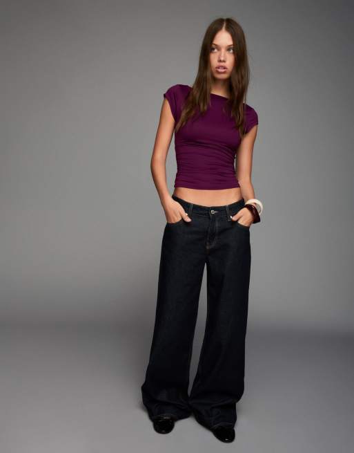 Bershka Short sleeve polyamide t-shirt in purple