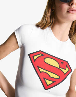 Bershka Short-sleeve superman t-shirt in white