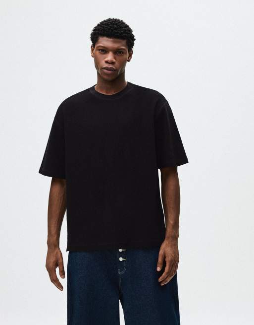 Bershka Short sleeve sweatshirt in black