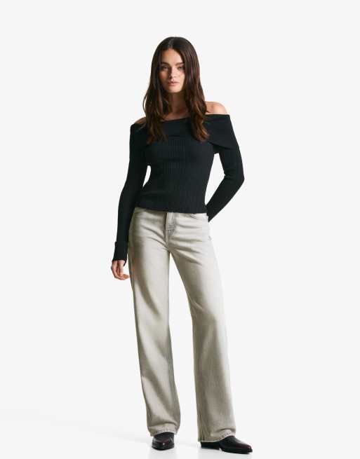 Bershka Straight wide-leg jeans in grey