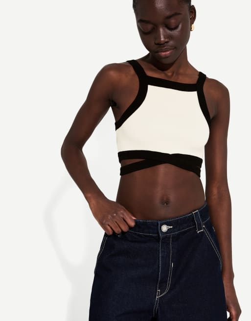 Bershka Strappy cut-out top with contrast straps in white