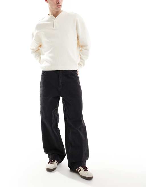 Bershka super baggy fit jean in solid black