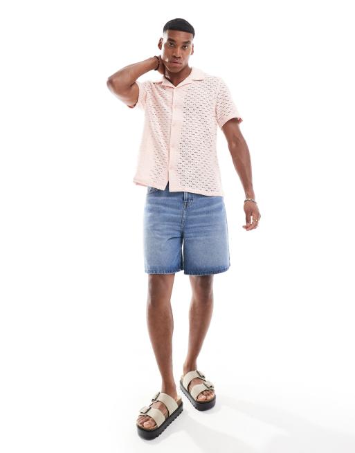 Bershka textured button through shirt in pink