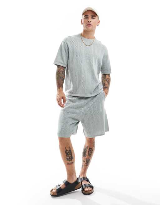 Bershka textured herringbone co-ord short in blue