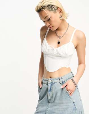 Bershka tie front corset in white
