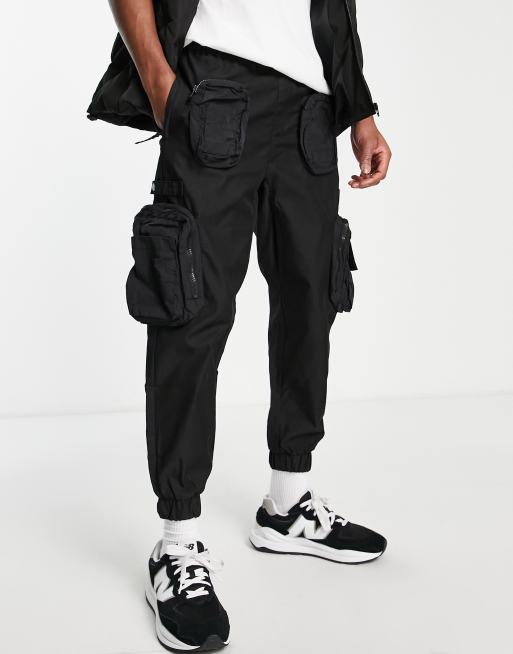Bershka utility cargo trousers with pockets in black