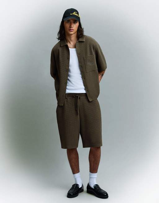 Bershka Waffle short sleeve shirt (co-ord) in khaki