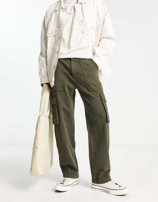Bershka wide leg cargo trouser in khaki