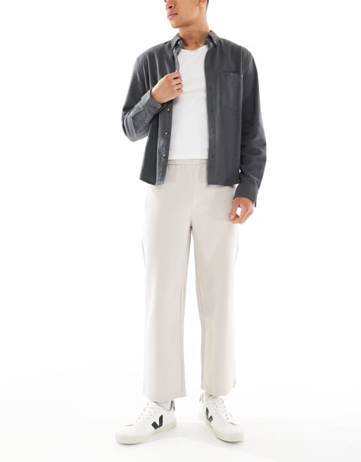 Bershka wide leg tailored trouser in beige