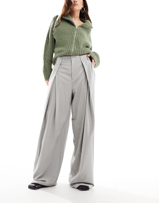 Bershka wrap over tailored trousers in stone