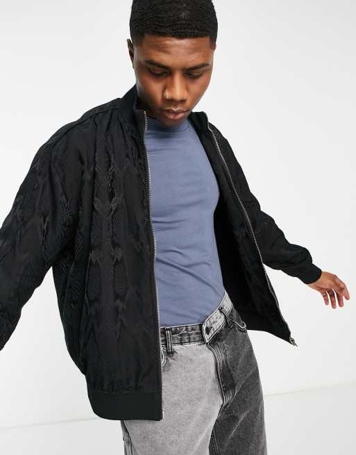 Bershka zip through co ord tracksuit jacket in black snake print