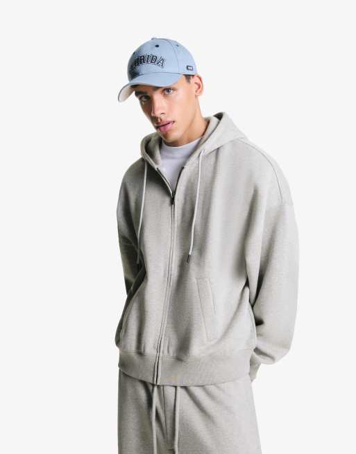 Bershka Zip-up hoodie in light grey