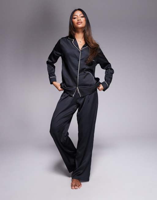 Bluebella Claudia Luxury Satin Long Pyjama Set in Black