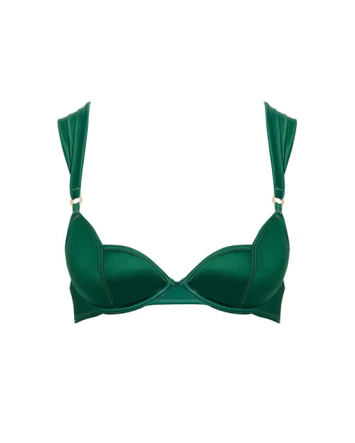 Bluebella Octavia luxury satin wired moulded bra (with removeable cookie) in aventurine green